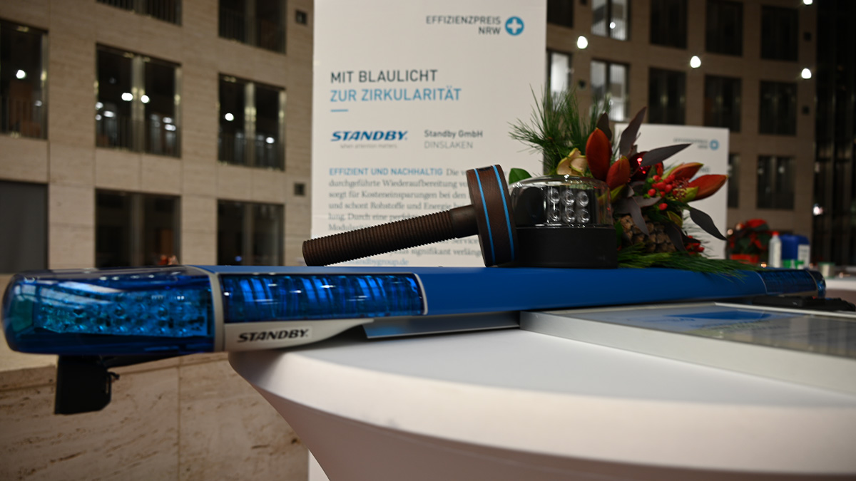 Die innovative Wiederaufbereitung unserer hochwertigen Sondersignalanlagen für Polizei und Feuerwehr wurde vergangene Woche im NRW-Umweltministerium in Düsseldorf ausgezeichnet.