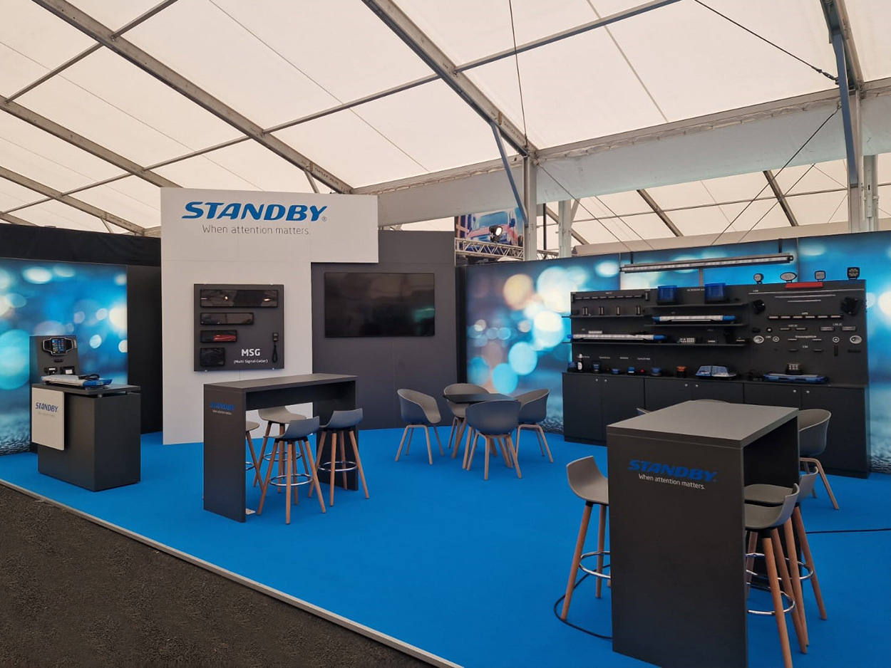 (Hinweis: Unser neuer Lichtbalken LB-200 ist auf einigen Bildern noch verdeckt; diese entstanden vor der Messeeröffnung und der Premierenpräsentation)