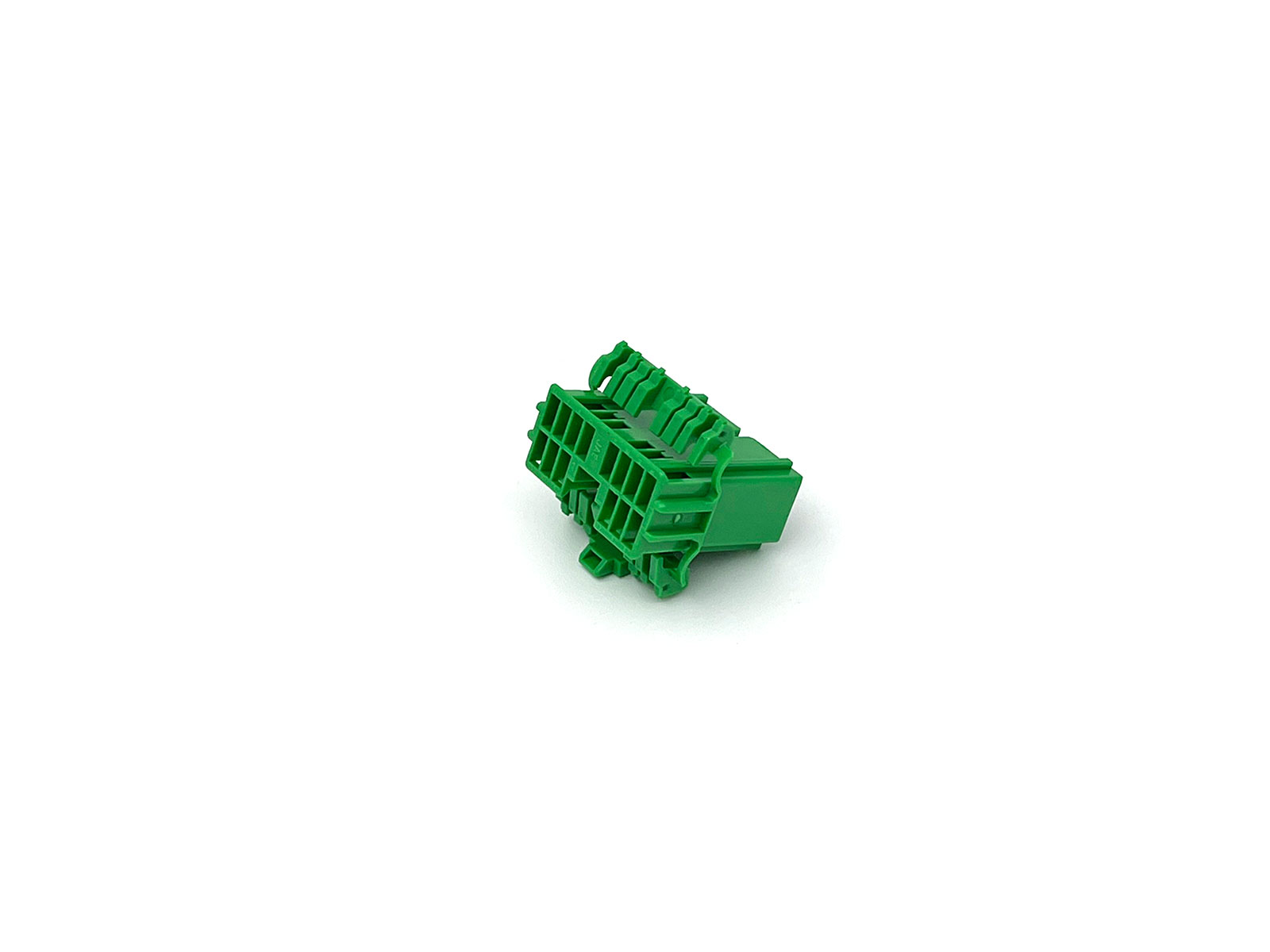Sopii emolevyyn. PBT materiaali. Vihreä. 14 pinnipaikkaa. HUOMIO! Liitinkotelo toimitetaan ilman liitinpinnejä. Yhteensopiva pinni 39900083.