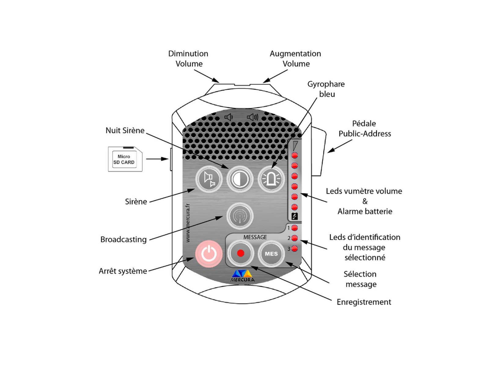 Le NANO 112 intègre une fonction Public Address pour diffuser des messages amplifiés. Il permet d’enregistrer jusqu’à 3 messages sur carte SD, assurant une communication claire en toutes situations. Une sirène générateur amplificateur de tonalité complète le dispositif.