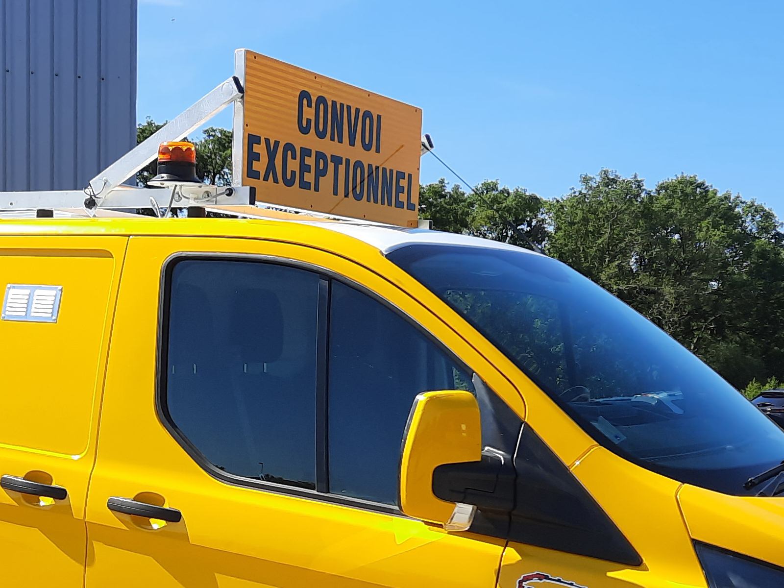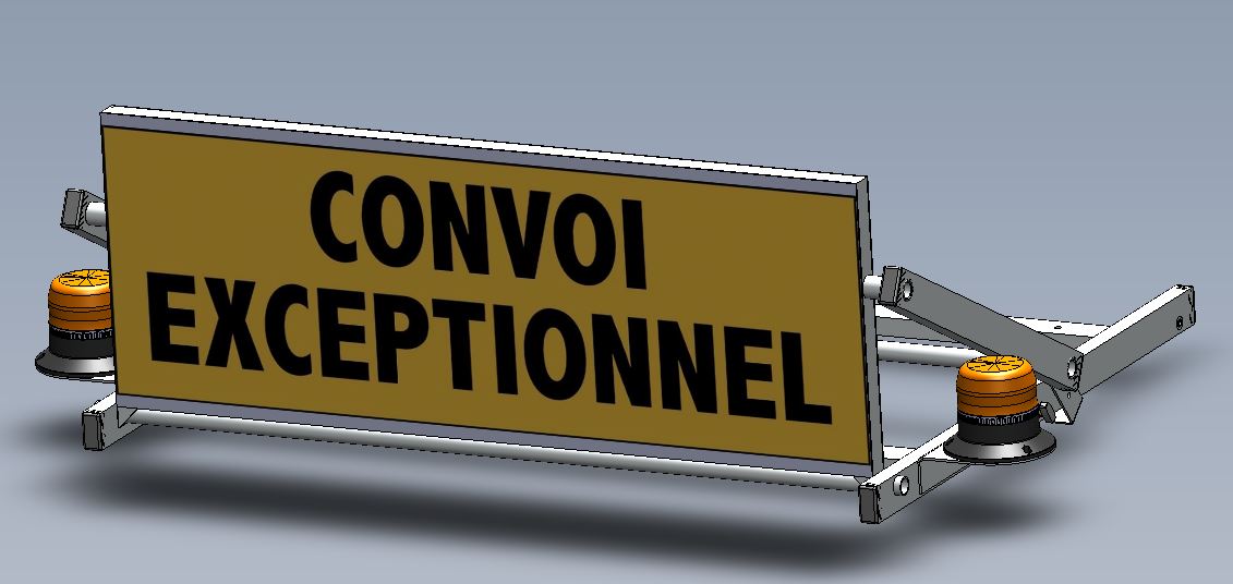 - Panneaux « CONVOI EXCEPTIONNEL » conformes à la réglementation (fond jaune, lettres noires, film rétroréfléchissant Classe II).