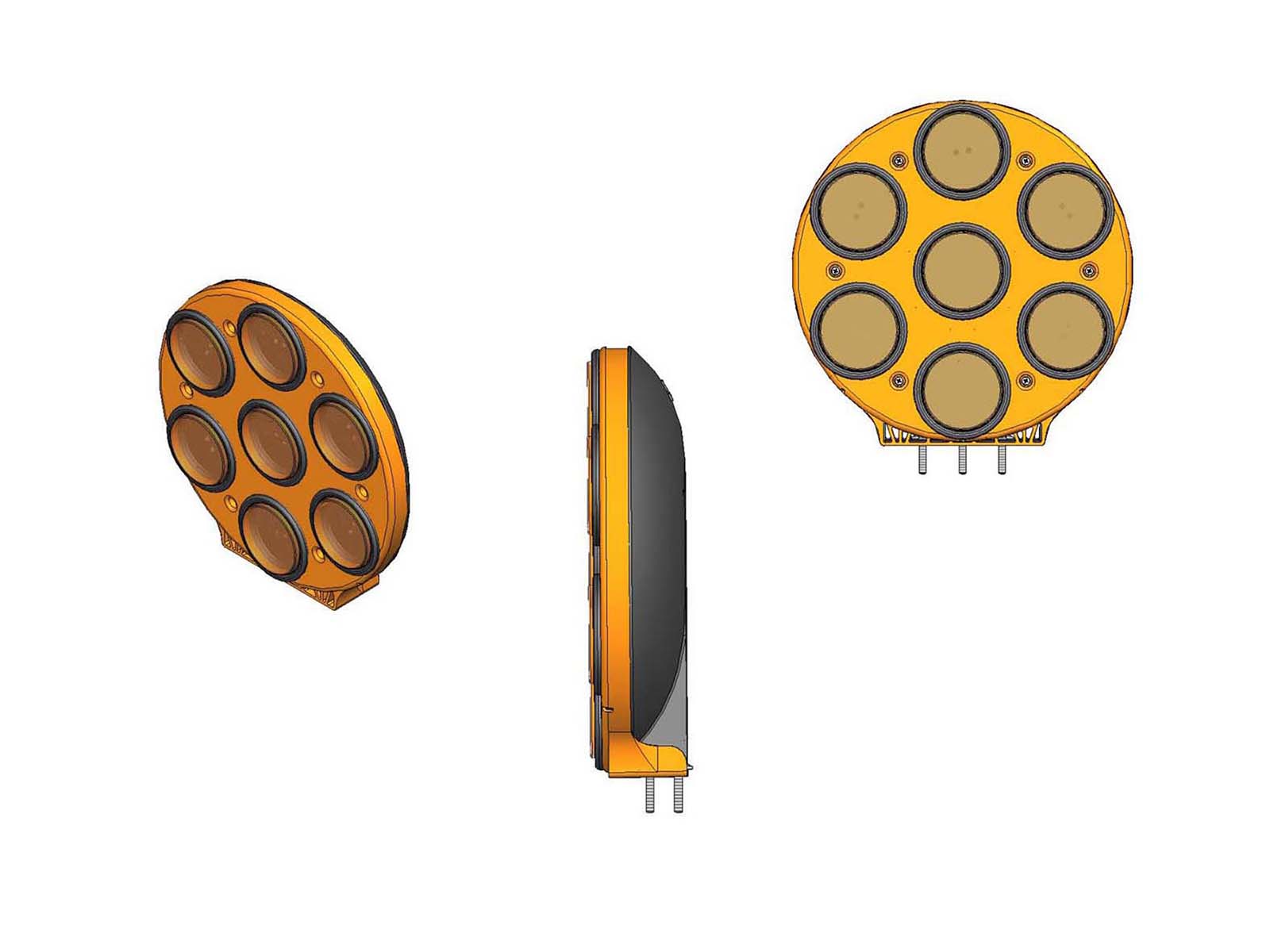 Les feux paraboliques d’alerte 300 mm KR2 à éclats sont conformes classe L9M suivant la norme EN 12352. Ils sont composés de 7 feux à LED de 74mm avec centrale électronique incorporées.