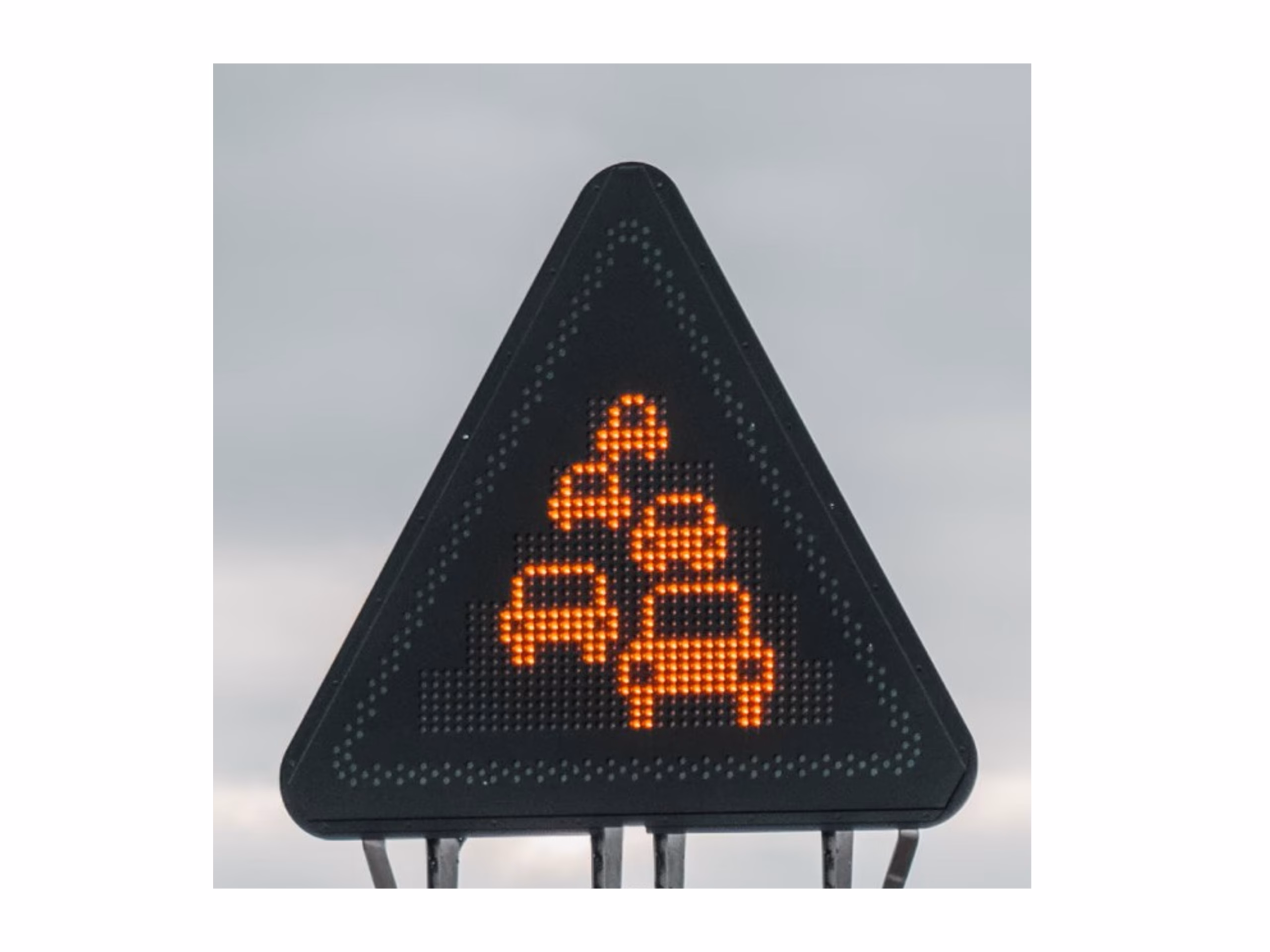 L’option Triangle à Pictogrammes LED est disponible sur les ensembles de toit ZENO (triangle 1250 mm) et AKIO (triangles 700 mm et 1250 mm). Elle améliore la signalisation lumineuse en affichant des pictogrammes conformes aux normes en vigueur. L’association du triangle LED avec les messages affichés sur le PMV améliore la compréhension des informations et des instructions par les usagers y compris les conducteurs étrangers.