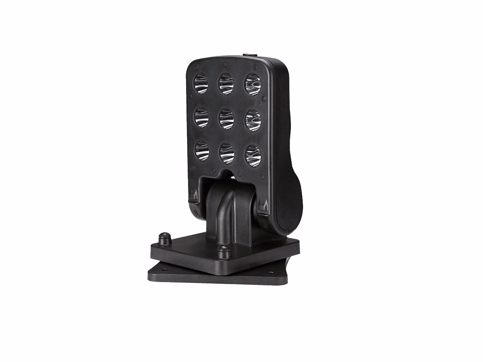 L’un des principaux atouts de ce projecteur est sa rotation totale. Il peut pivoter horizontalement à 360° et s’incliner jusqu’à 160° verticalement. Cela permet d’adapter l’éclairage à la situation sur le terrain.