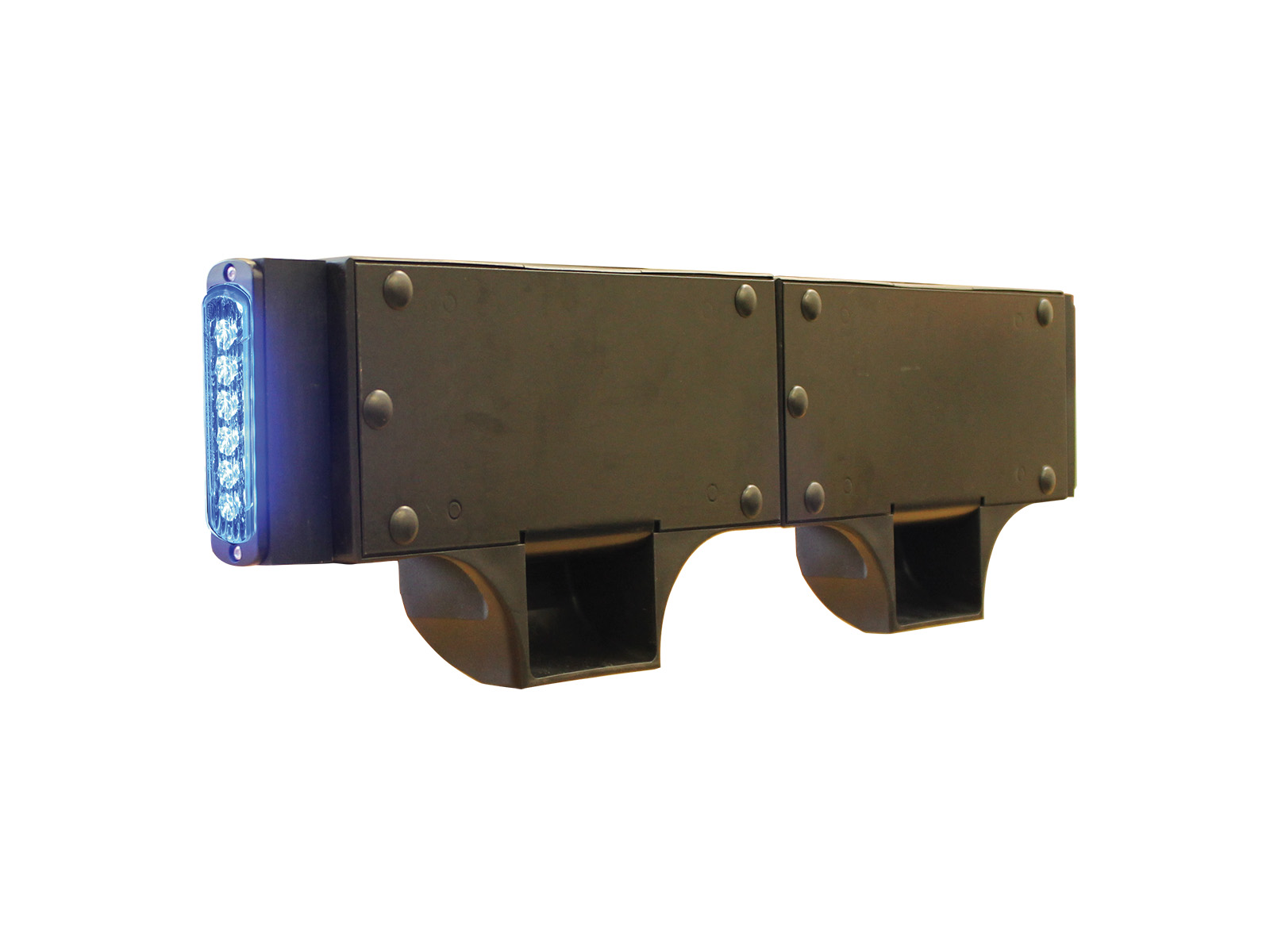 Pour renforcer la visibilité, il est possible d’ajouter des feux lumineux latéraux ou frontaux. Cette personnalisation permet d’adapter la Sonorplaque aux exigences opérationnelles et aux préférences des utilisateurs. Une version sans sirène, équipée uniquement de haut-parleurs, est également disponible pour les configurations spécifiques.