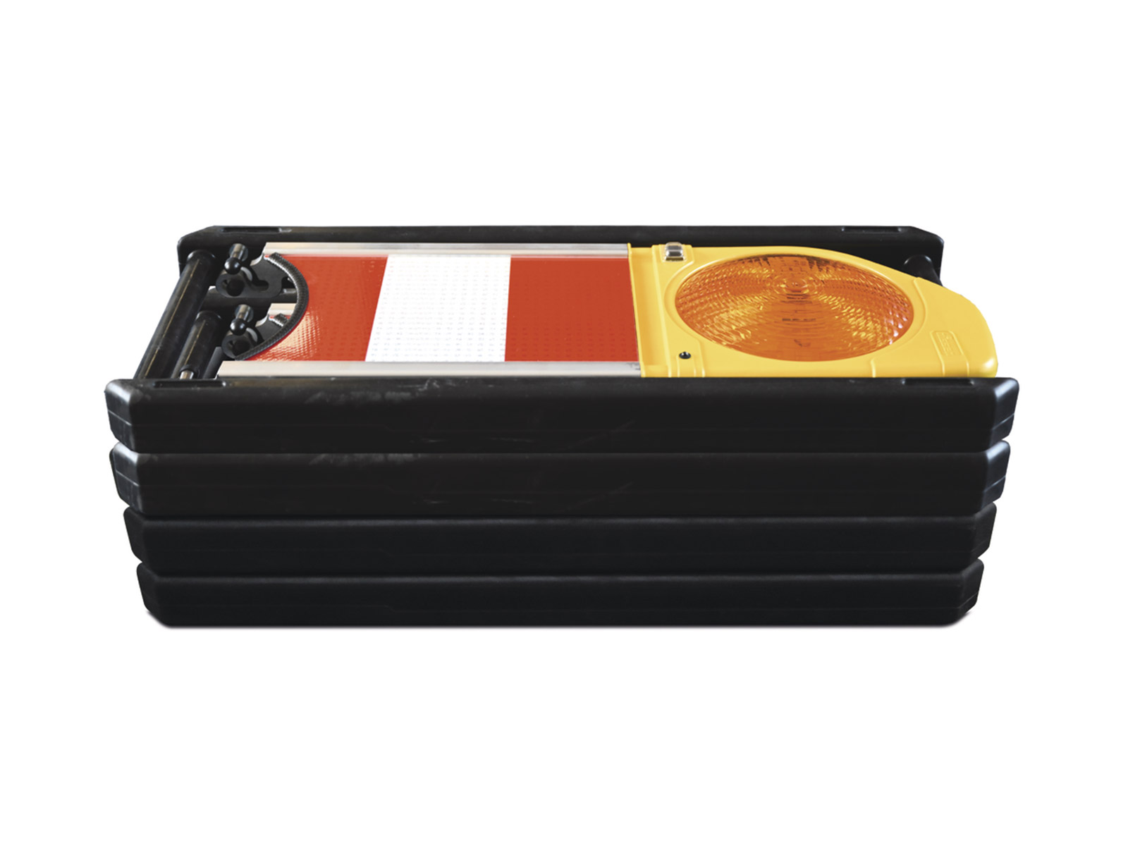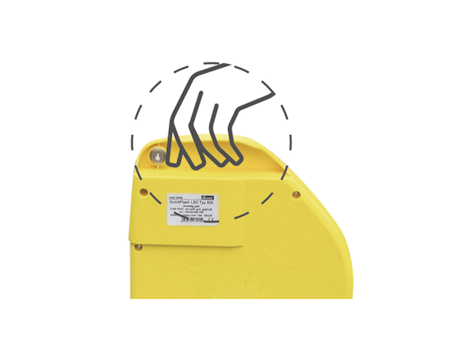 QuickFlash 630 Gul är ett fristående varningsljus för omledning av trafik vid t ex vägarbeten. Den är extremt strömsnål då den enbart har en 1 st LED vilket ger lång batteritid. Den är enkel att förvara då man kan stapla flera enheter på varandra samt även lätt att bära med sig tack vare det inbyggda handtaget. QuickFlash 630 Gul har en kraftig konstruktion med gummerad fot. Den är synkroniseringsbar mellan flera enheter via den inbyggda infraröda dioden och har automatisk dag och nattinställning.
