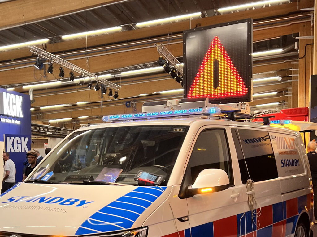 På Elmia Lastbil visade vi bland annat upp en ny takskylt, WeNiPol 3, som är anpassad med blå/gul Standby L52 2C.