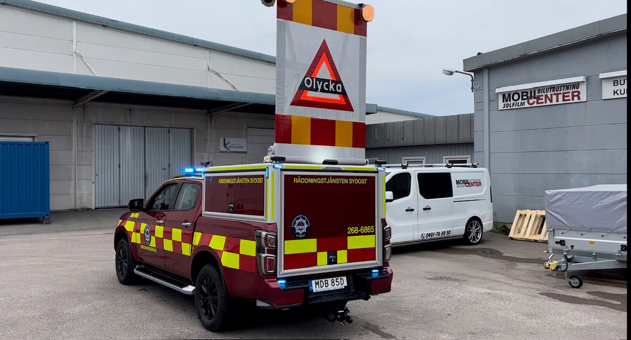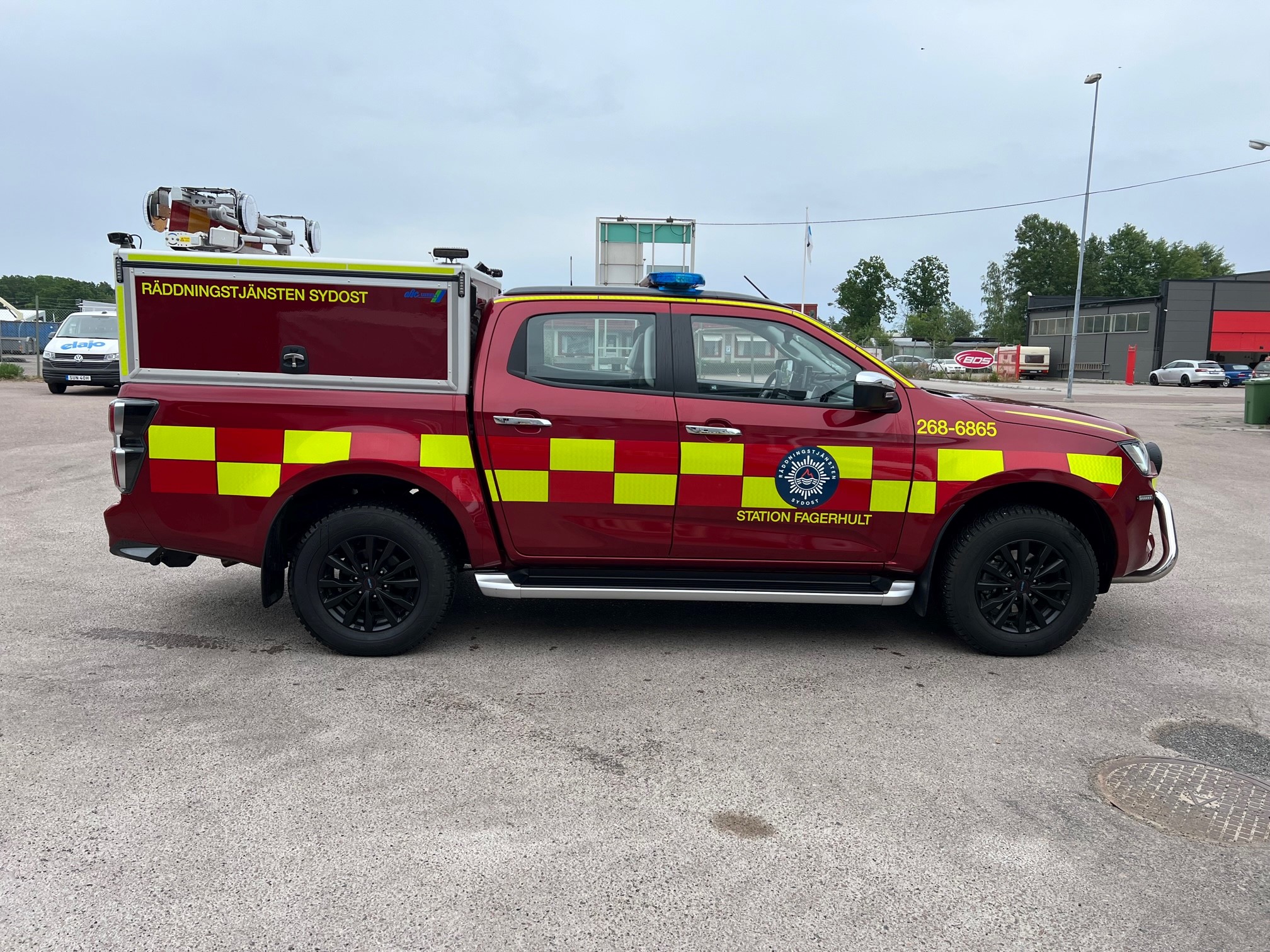 Insatsledarbil byggd på Izuzu Pickup av MobilCenter Oskarshamn till Räddningstjänsten Sydost (Station Fagerhult). Standby-produkter på bilen är W3 Ljusramp, CS25 Styrsystem med Mini-Din panel samt L52 2C varningsljus och L54 backljus.