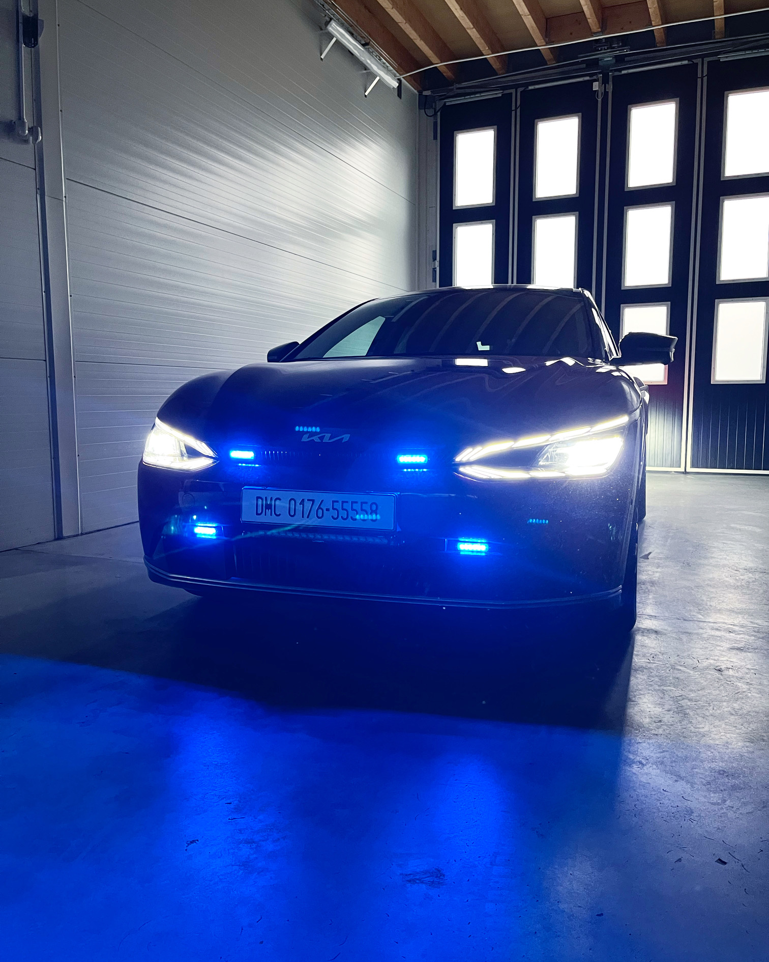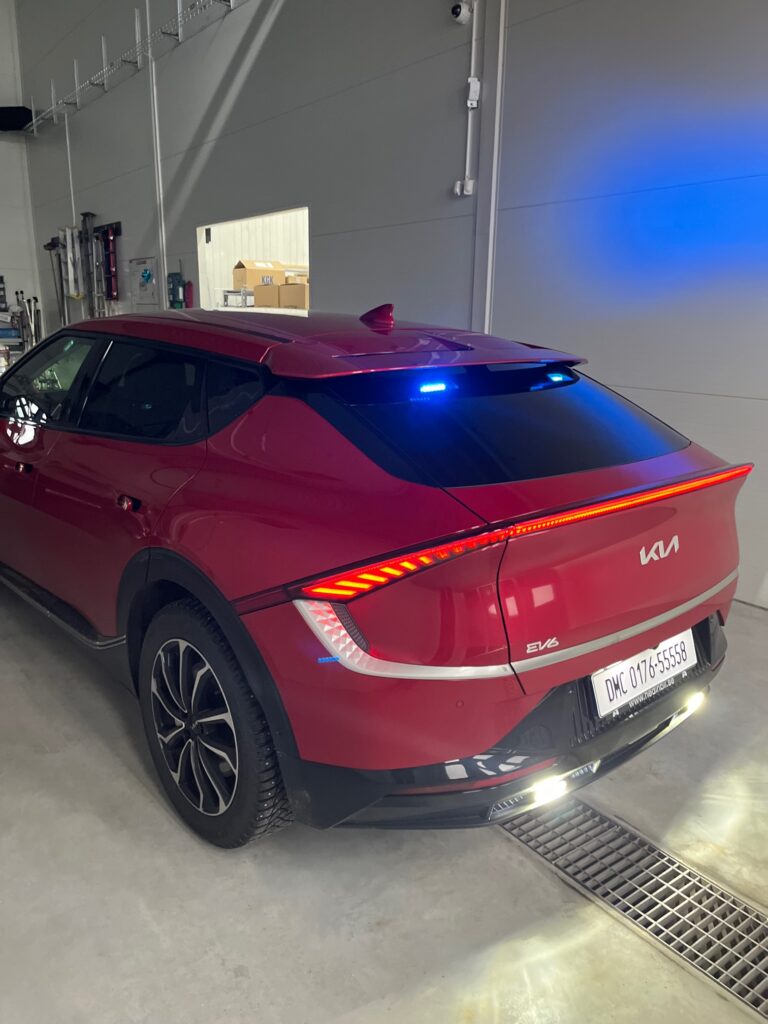 Ledningsbil byggd på Kia EV6 av DMC Sound till Räddningstjänsten i Norrtälje. Standby-produkter på bilen är CS25 Styrsystem, L52 tonade varningsljus, L52 vita backjus, L52 Lamphus vindruta och Registreringsplåtshållare med varningsljus.