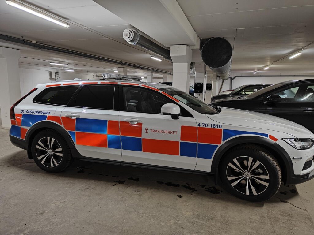 Fordon för olycksutredning till Trafikverket byggd på en Volvo V90 av Uppsala Automontering.