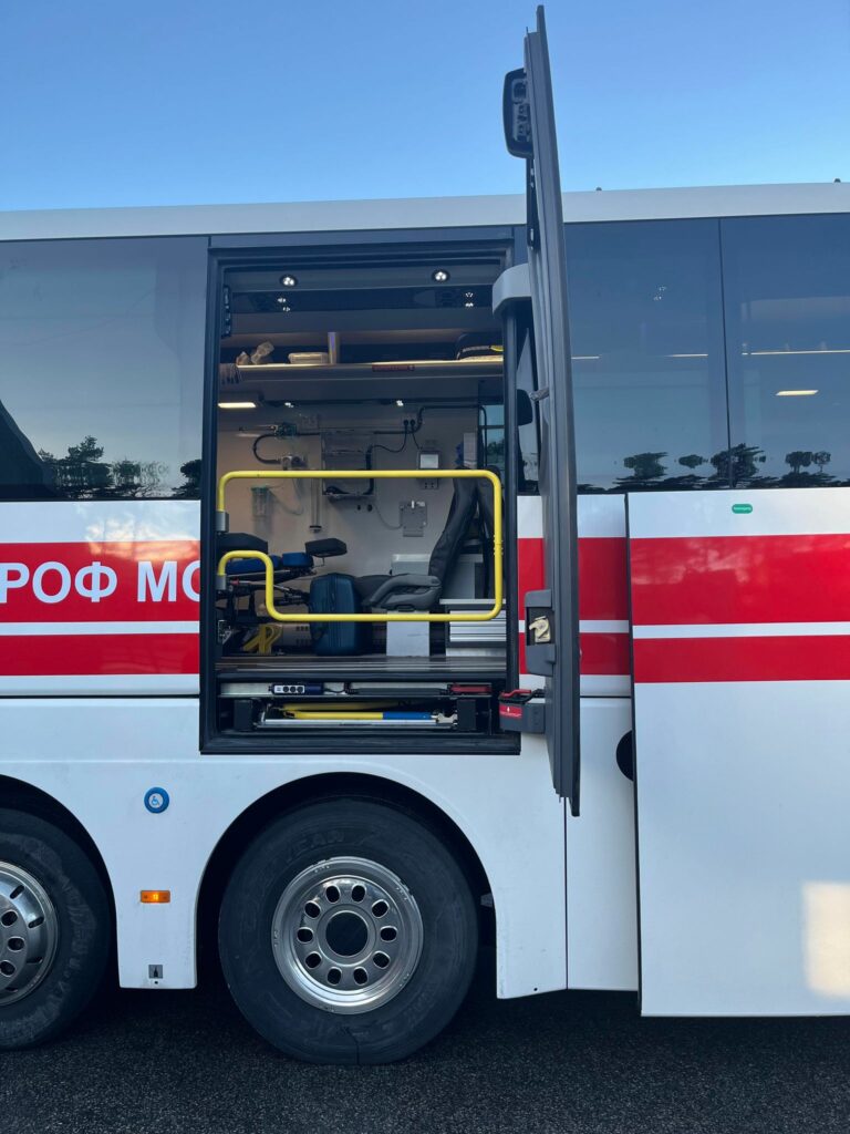 Fem stycken ambulansbussar byggda på Volvo och MAN (bilderna) av Volvo Bussar i Säffle skänks av Norska regeringen till hjälparbetet i Ukraina. Standby-produkter på bussarna är CS25 Styrsystem och L56 Varningsljus. Mer info finns här.