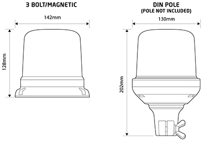 The LPB range of LED beacons features a low profile polycarbonate lens with a robust aluminium base and 12 x 3W high performance LEDs that can operate in three flash patterns including simulated rotating.