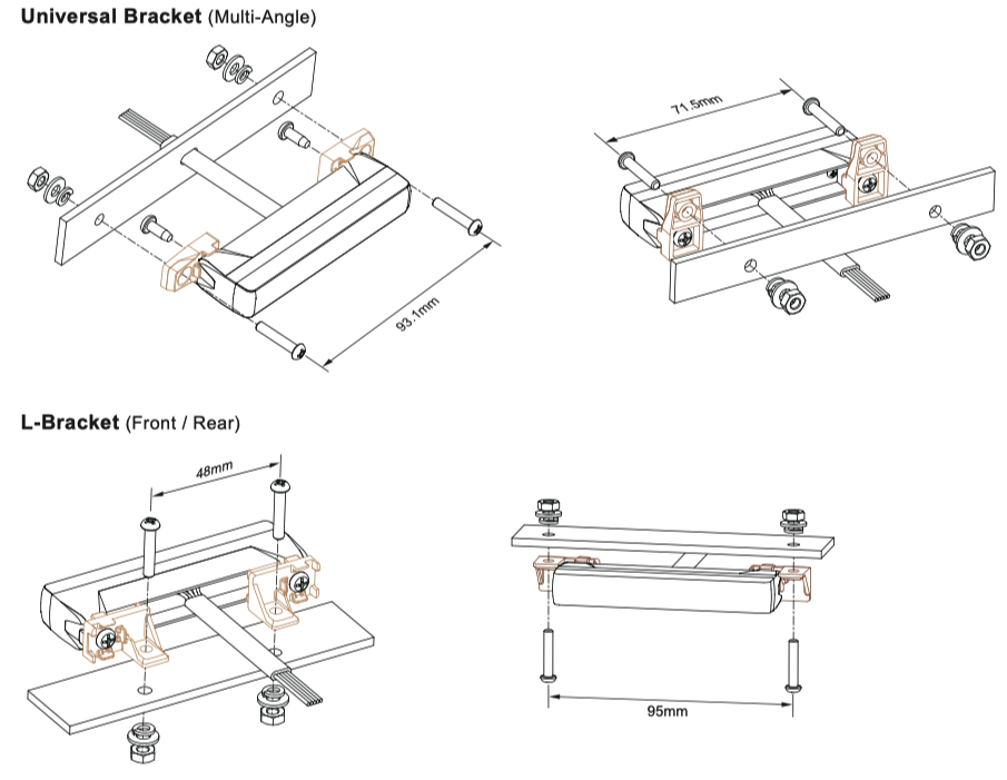 Supplied complete with a selection of mounting brackets for a variety of fixing options.