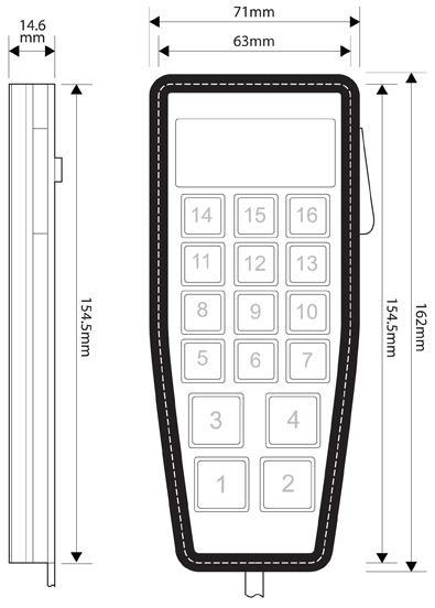 This multi-way handset is equipped with a total of 16 buttons, 12 of which are individual function buttons, 2 are special buttons (Clear All and Walk Test) and 2 combination buttons based upon established tactile switch technology that can be ‘user’ programmed to suit a wide variety of applications.
