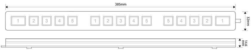 Our F5T Slimline switch unit consists of 15 buttons (13 small and 2 large) with appropriate legend and key colour.