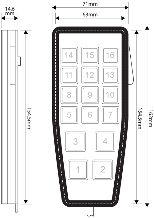 The MCS-T17 Universal Handset Plus is designed to be mounted adjacent to the vehicle centre console via a microphone type clip and bracket. A flexible, removable, non-slip, protective rubber surround encases the unit resulting in a robust, hard wearing, professional switch solution.