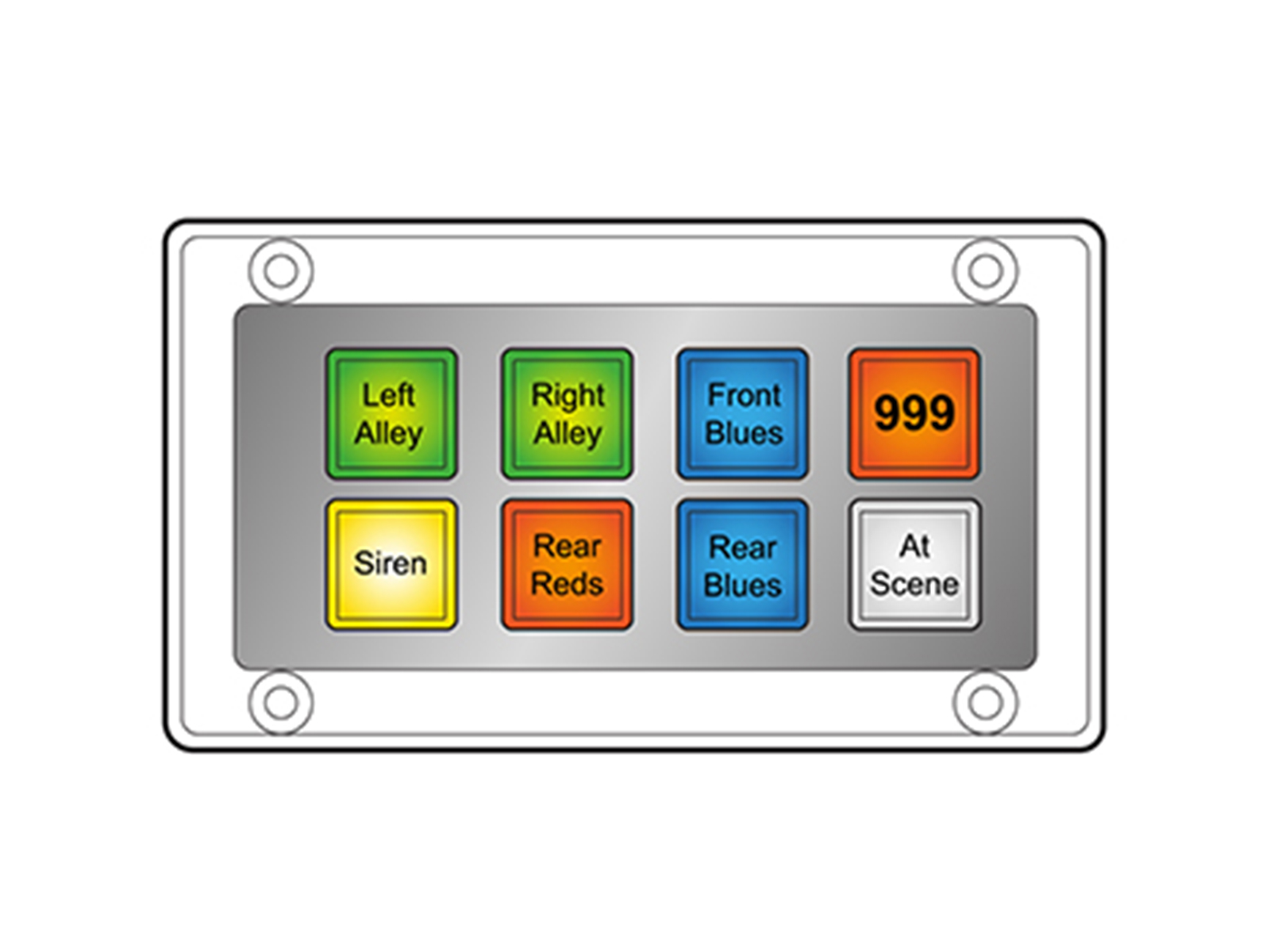 This switch unit has 8 small dual function buttons with appropriate legends and key colours.