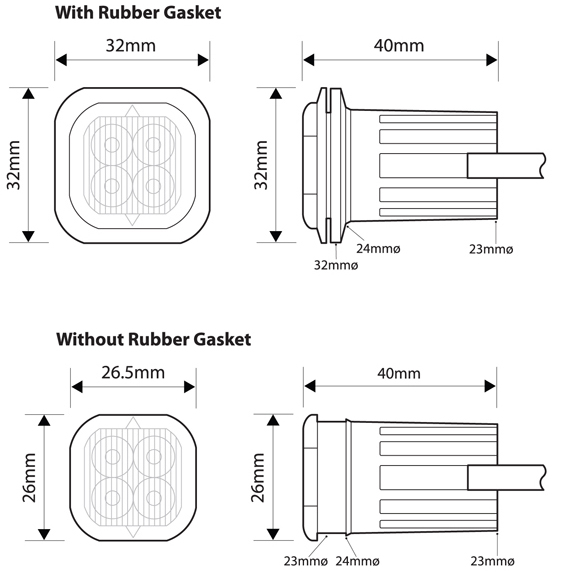 The Micro Burst Low Profile LED Module is sold in pairs complete with in-line power pack, 2 metre extension cables and waterproof connectors.