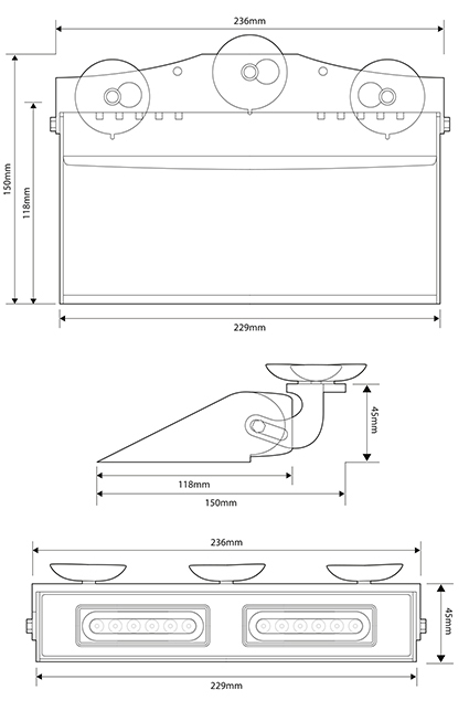 The Micromax Xtreme II 12-LED Dash Light is supplied complete with cigar plug connector, flashback shield, adjustable mounting bracket, suction cups for windscreen mounting and adhesive Velcro pads for dash mounting.