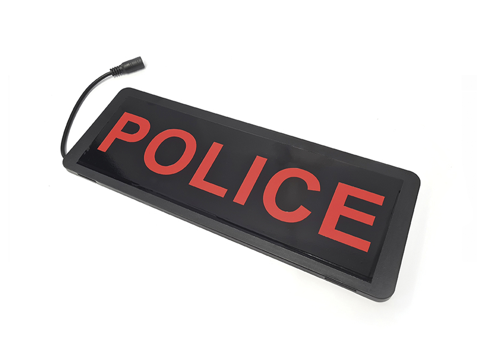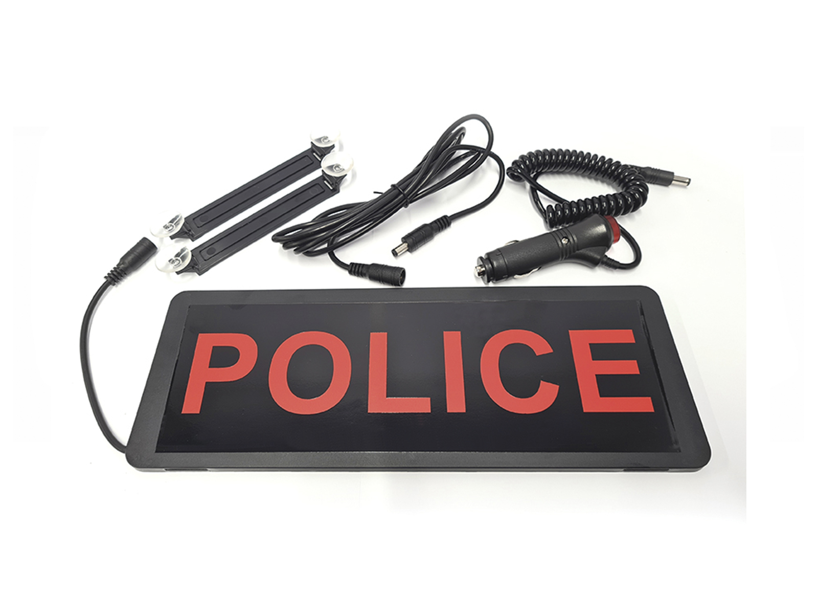 The Safe Responder R is an illuminated sign designed for a vehicle rear window. It provides visual identification for retained, voluntary and main line emergency personnel.